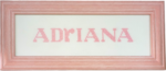 Quadro com estrutura em madeira em tons de rosa Adriana. Medidas aproximadas: 28 por 12 cm.