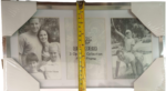 Moldura em metal com passe-partou para três fotos. Medidas aproximadas: 20 por 38 cm.. Usado.