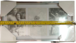 Moldura em metal com passe-partou para três fotos. Medidas aproximadas: 20 por 38 cm.